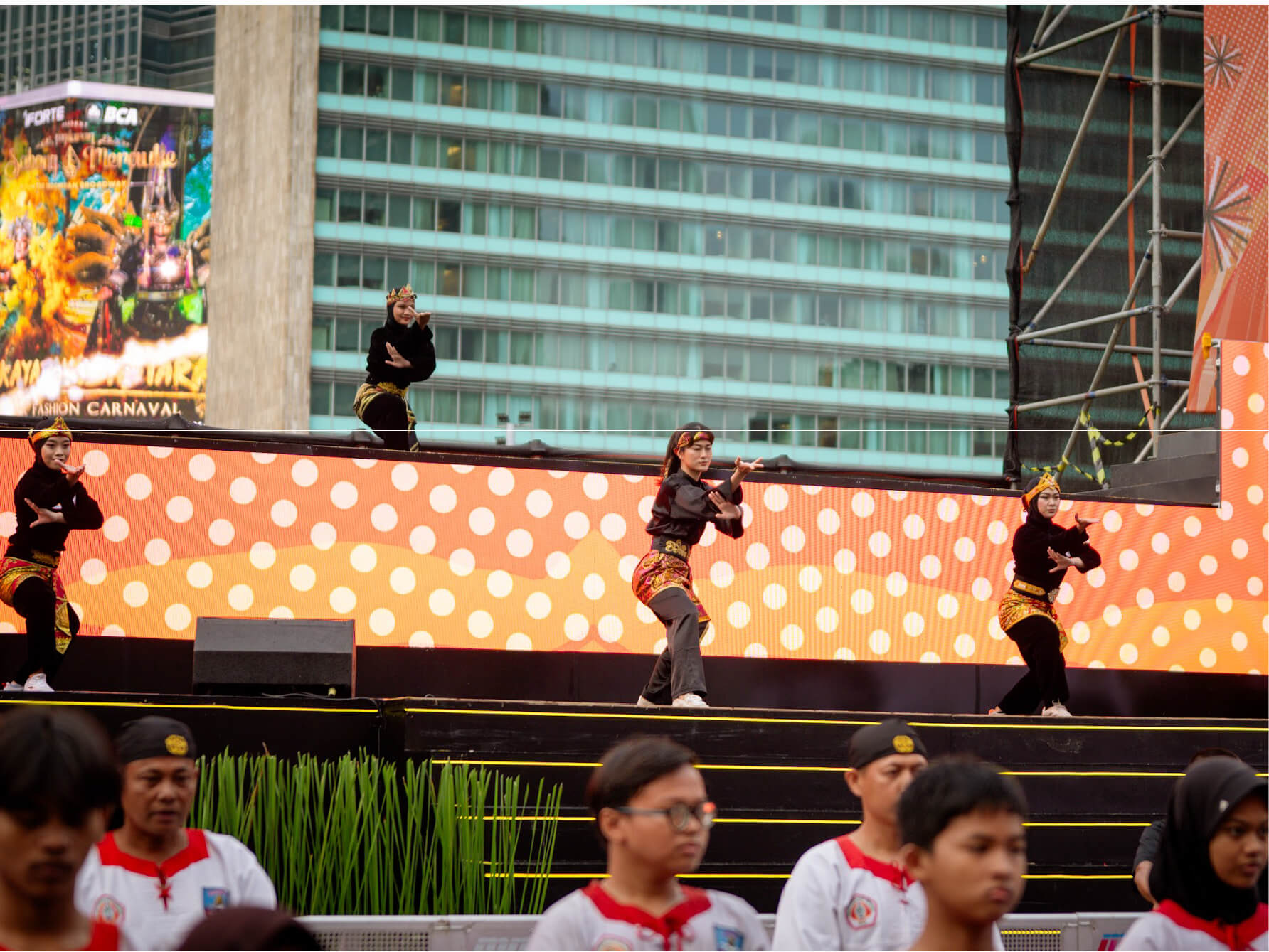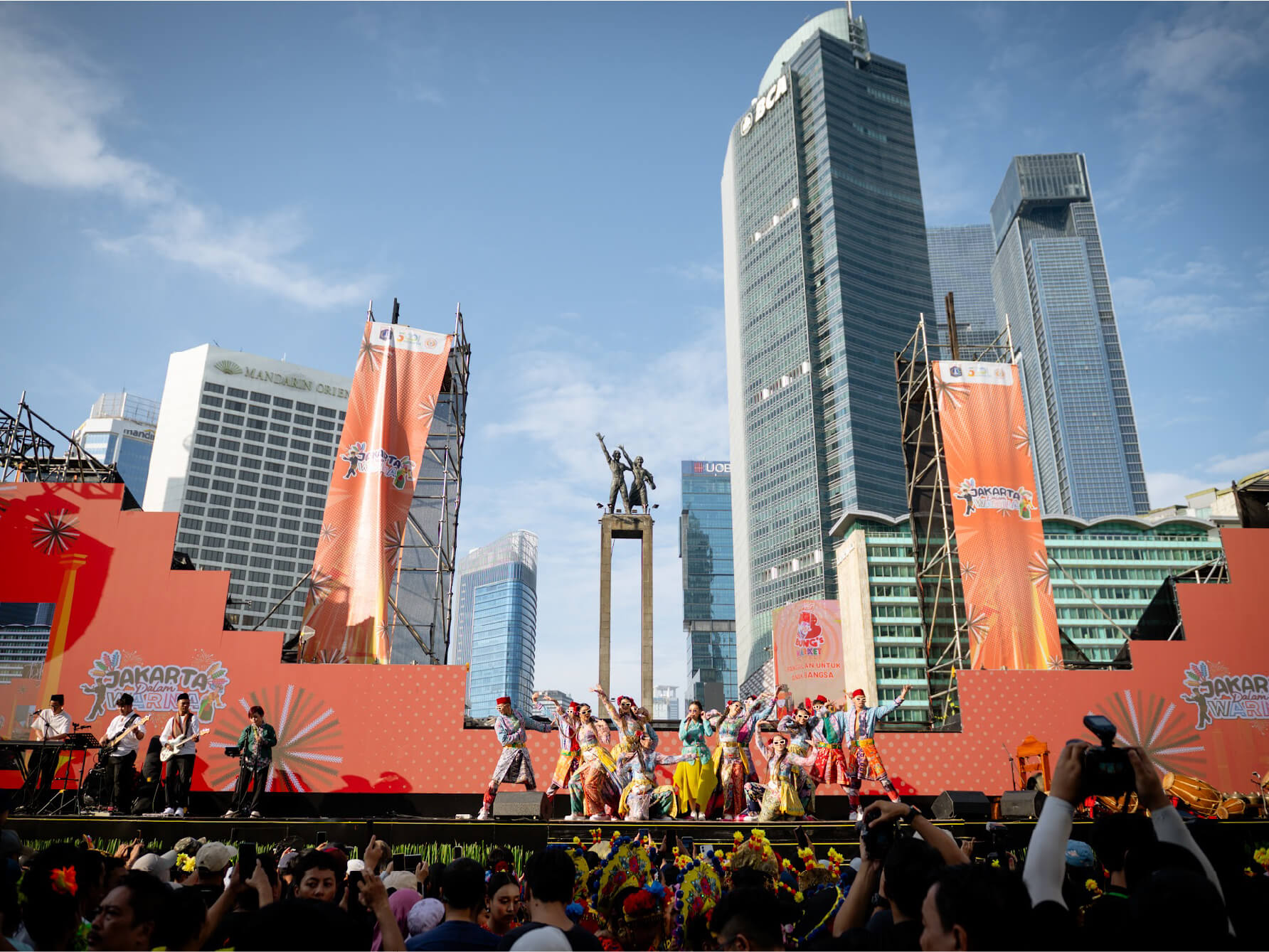 Jakarta Dalam Warna is a grand cultural celebration held by the Jakarta Provincial Government on July 6, 2025, at the HI Roundabout, featuring over 5,000 pesilat and 2,000 traditional Betawi dancers, along with marching bands, giant ondel-ondel figures, and performances by renowned artists. The event broke a MURI record and served as a showcase of Jakarta’s rich artistic heritage and cultural diversity.